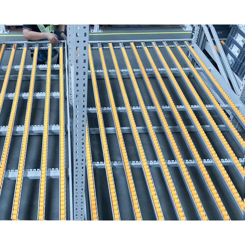 قفسه رولر جریان کارتن شامل قاب عمودی، پرت، رولر و تقسیم کننده است.